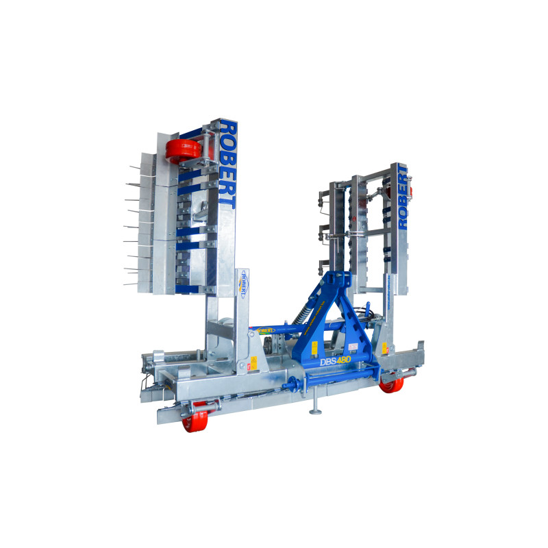 Hydraulisches Einklappen durch S.E.-Zylinder, damit die Seitenteile dem Gelände folgen können. Im Transportmodus sind alle DBS-Modelle mit einer automatischen Verriegelung ausgestattet.