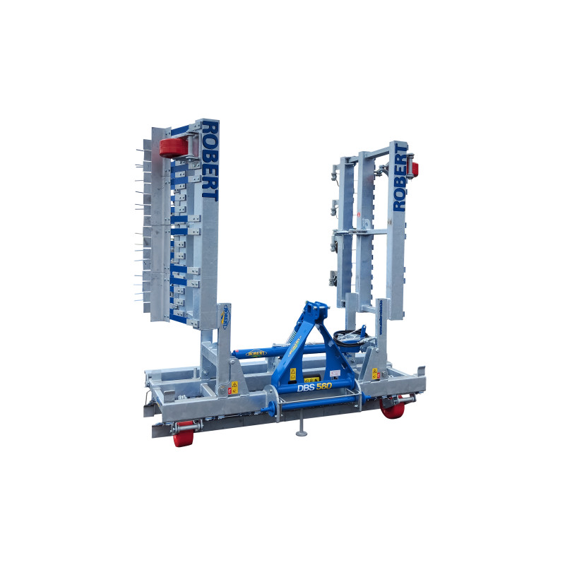 Hydraulisches Einklappen durch S.E.-Zylinder, damit die Seitenteile dem Gelände folgen können. Im Transportmodus sind alle DBS-Modelle mit einer automatischen Verriegelung ausgestattet.