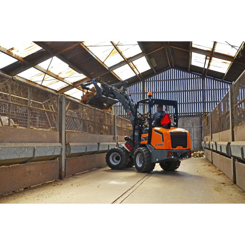 Der kompakte Radlader G2700 HD ist serienmäßig mit verstärkten Planetenachsen mit einer Tragfähigkeit von 8 Tonnen ausgestattet. Sein leistungsstarker Stage-V-Motor mit 50,4 PS ermöglicht eine Zugkraft von 20.000 N und eine Kipplast von 2.070 kg – und das bei einem kompakten Design, das diese Maschine besonders auszeichnet.