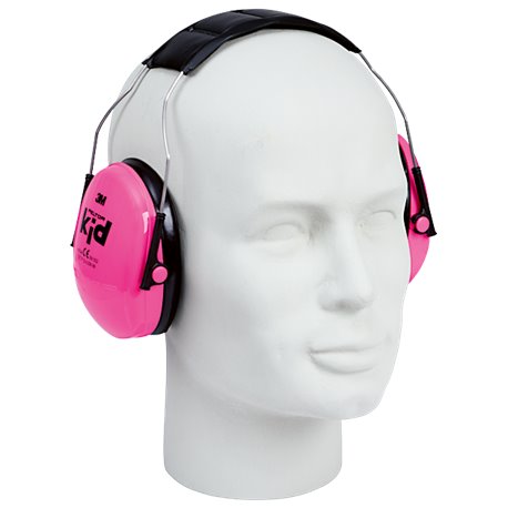 Kapselgehörschutz 3M PELTOR für Kinder, leuchtpink, flüssigkeits- und schaumstoffgefüllte, auswechselbare Ohrenkissen, Kunststoff-Kopfbügel und verstellbare Stahldraht-Kapselhalterungen. Gewicht ca. 175 g.