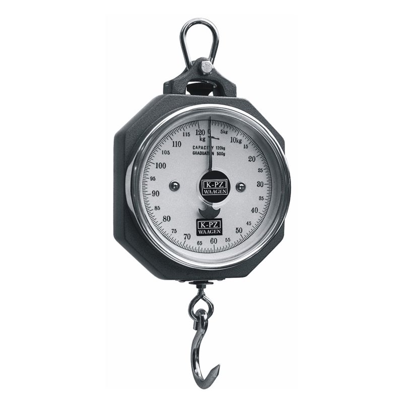 KPZ 301, Kranwaage zur einfachen und schnellen Ermittlung von Gewichten. Robuste Ausführung mit kurzer Baulänge und geringem Eigengewicht. Das Gehäuse besteht aus Aluminiumgus. Einhängering sowie Lasthaken sind aus Stahl. Die Waage arbeitet nach dem robusten und bewährten Doppelfedersystem. Das Ziffernblatt ist durch eine Plexiglasscheibe geschützt. Sofern nach Gebrauch notwendig, kann die Waage durch nachspannen der Feder einfach nachjustiert werden.