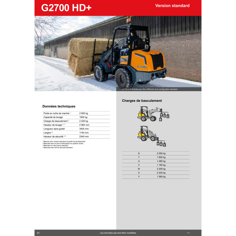 – Feux de travail (halogènes) à l’avant, sur le bras de levage