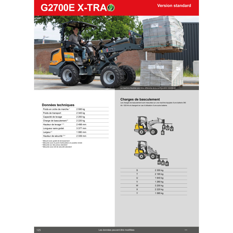 Le modèle G2700E X-TRA conserve une puissance impressionnante tout en éliminant les émissions de co2. Cette machine électrique associe robustesse et confort tout en répondant aux besoins des travaux les plus exigeants.