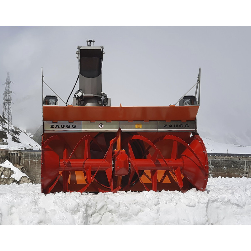 La turbo-fraise à neige est spécialement conçue pour montage sur de gros véhicules porteurs. La protection contre la surcharge est assurée par des disjoncteurs automatiques intégrés aux tambours de fraise. Le modèle est équipé de série d’un carter de turbine d’éjection orientable et peut être équipée d’une lame d’usure rabattable.