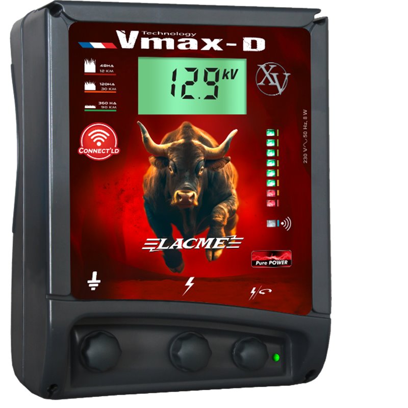 Electrificateur nouvelle génération VMax permettant une performance de garde inégalée lorsque la végétation a envahi complètement la clôture (UBI). Sa très haute tension, sans égale dans ces conditions, permet de transporter l'impulsion POWER BOOST 3 même à travers les herbes denses et sur de très longues distances. Elle permet également à VMax de rester ultra performant même lorsque les conditions sont standard. Ce qui en fait un appareil universel, le meilleur en toutes circonstances. VMax est capable de délivrer l'énergie nécessaire de 0 à 10 k.omh Il est équipé de série d'un écran de contrôle incluant un herbomètre digitale, d'un baregraphe à LED pour une visualisation immédiate de l'efficacité ainsi que de l'option Connect’LD. Pilotage à distance : Connect'LD signifie compatible L.BOX LD. La L.BOX LD vous permet de le télécommander à distance, d'être averti en cas de problème sur votre installation et de contrôler à tout moment la tension délivrée par votre clôture. Le tout sur votre smartphone.
